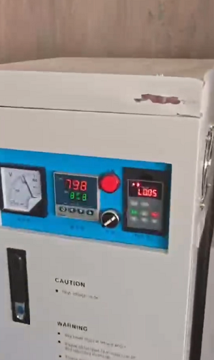 這臺(tái)污泥處理采用310S不銹鋼材質(zhì),要求加熱溫度達(dá)到850度,這個(gè)是電磁加熱器安裝現(xiàn)場(chǎng):