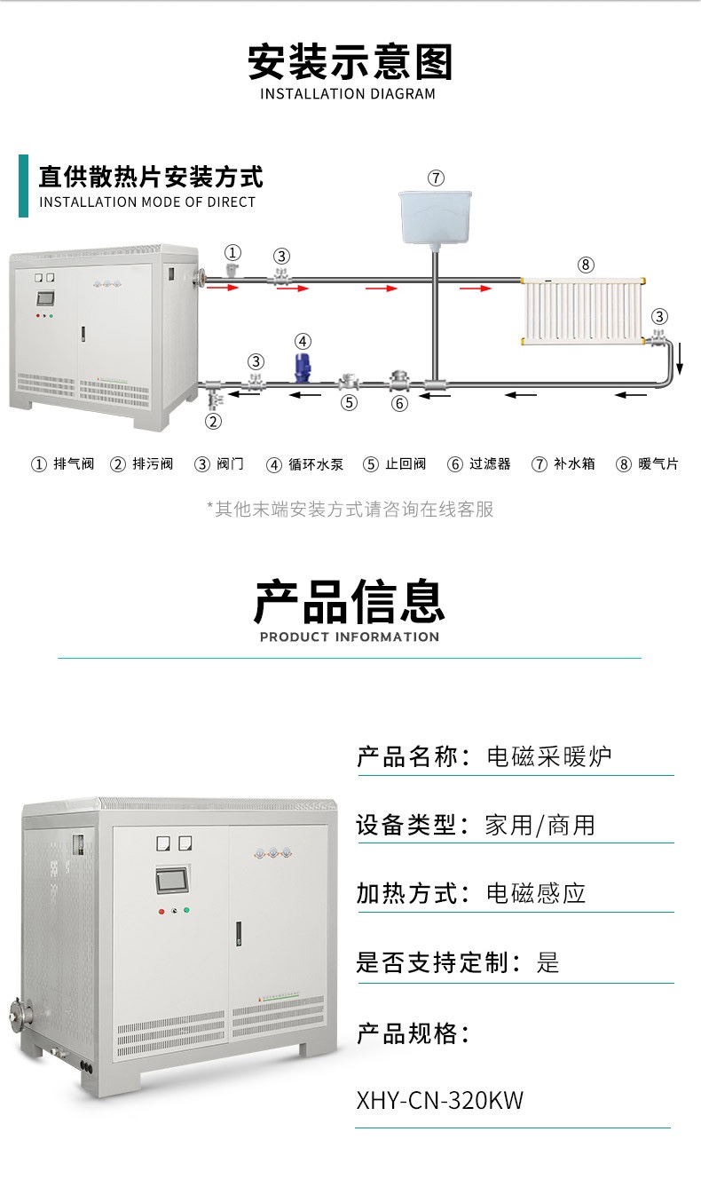 產品簡介:140kw電磁采暖爐是三相電380v電壓,適合工廠,商務樓,辦公室,員工宿舍采暖、加熱水;具有水電分離,節(jié)能省電的特性。