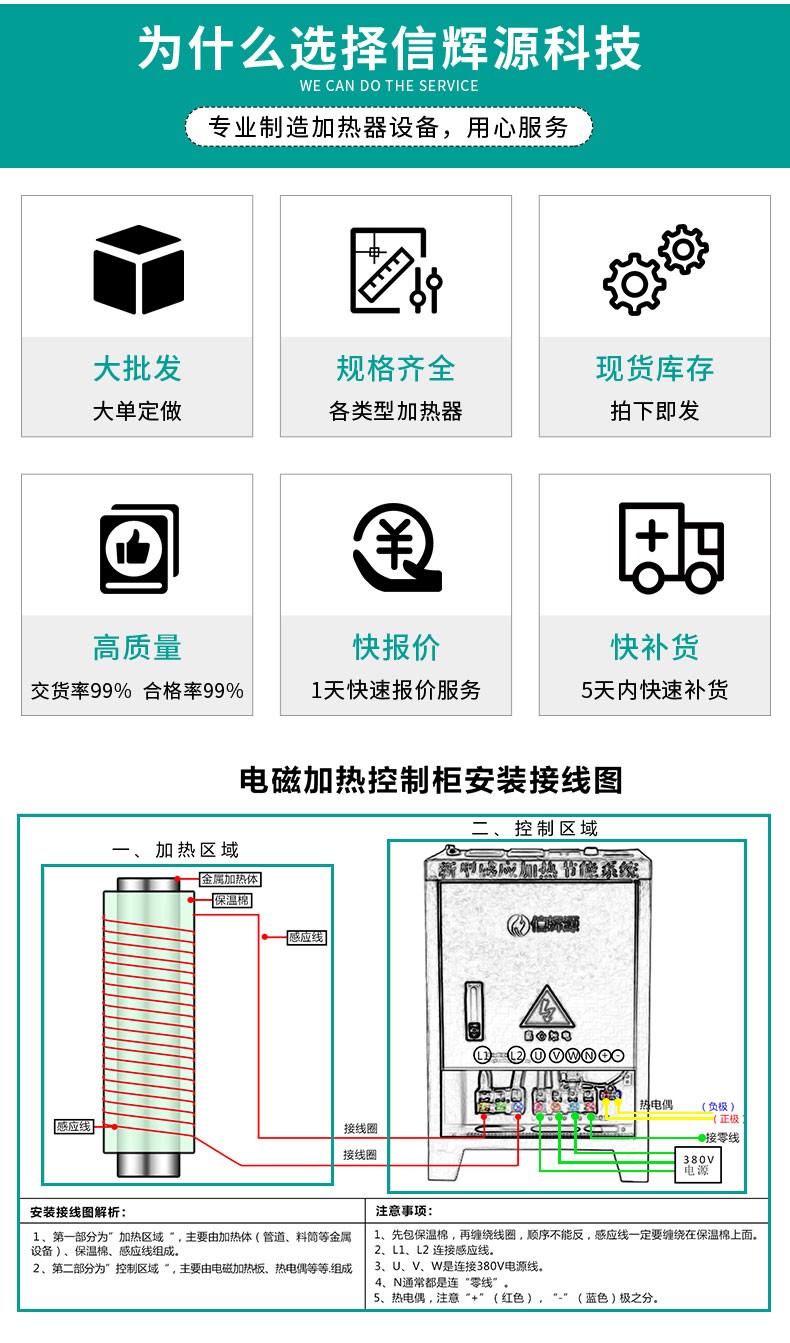 產(chǎn)品簡介:30KW電磁加熱器磁加熱系統(tǒng)由兩部分組成:電磁控制器和加熱圈。原機受溫度控制的電源(加熱輸出接觸器(或固態(tài)繼電器)輸出端)經(jīng)電磁控制器將工頻交流電整流、濾波、逆變成20—50KHZ的高頻高壓電,通過連接線接到電磁加熱圈上,高頻交流電透過保溫材料作用于料筒,使料筒本身發(fā)熱。另外,也可以把電源直接輸入到電磁控制器,原有的溫度控制器直接用來控制電磁控制器。